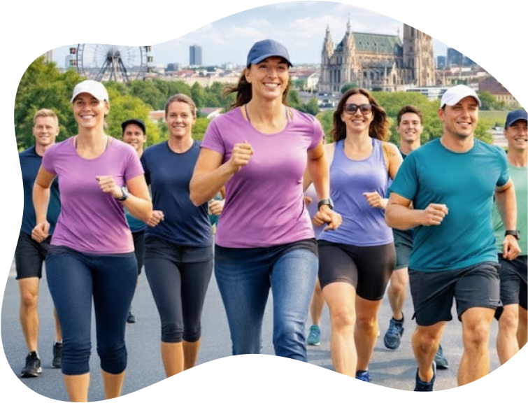 Um Bewegung einfach, alltagstauglich und gemeinschaftlich zu machen. Menschen gehen gemeinsam 5 km zügig durch die Stadt – ohne Leistungsdruck, ohne Wettkampf. Im Mittelpunkt stehen Energie, Community und ein aktiver Lebensstil im urbanen Raum.